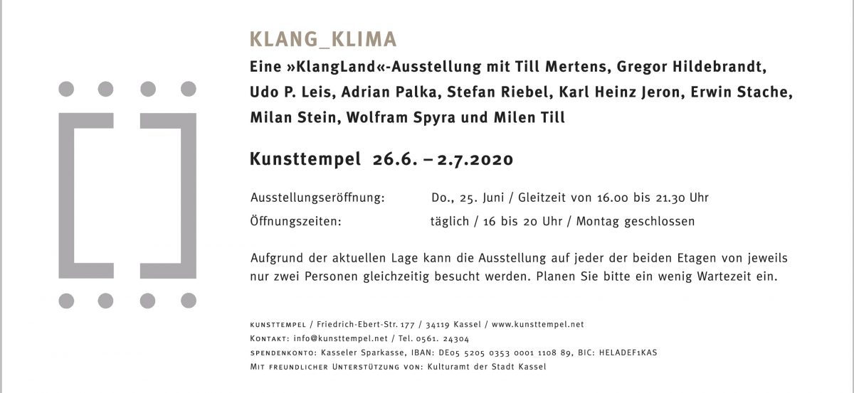 Im November 2020 und Frühjahr 2021 sollten die ersten Ausstellungen in Romø, Skargen Nykobing und Koppenhagen beginnen, doch nun wird die Arbeit zuerst im Rahmen von KlangLand 20 Klang_Klima gezeigt.